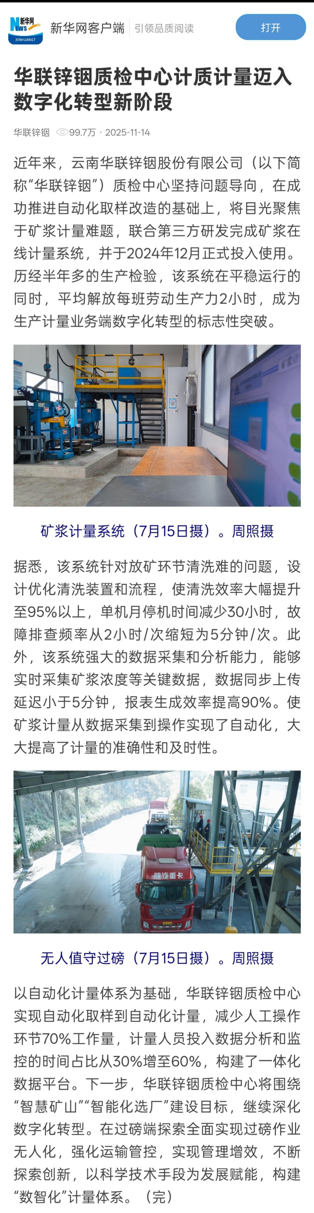 新华网客户端:华联锌铟质检中心计质计量迈入数字化转型新阶段
