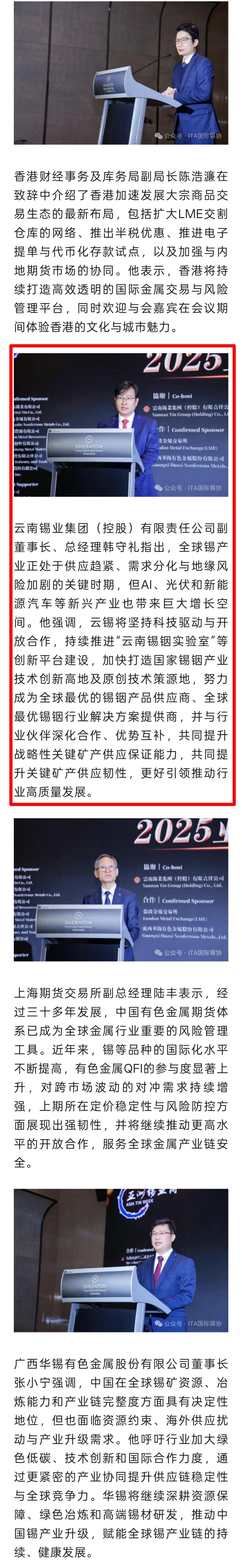 ITA国际锡协:2025亚洲锡业周在香港成功召开