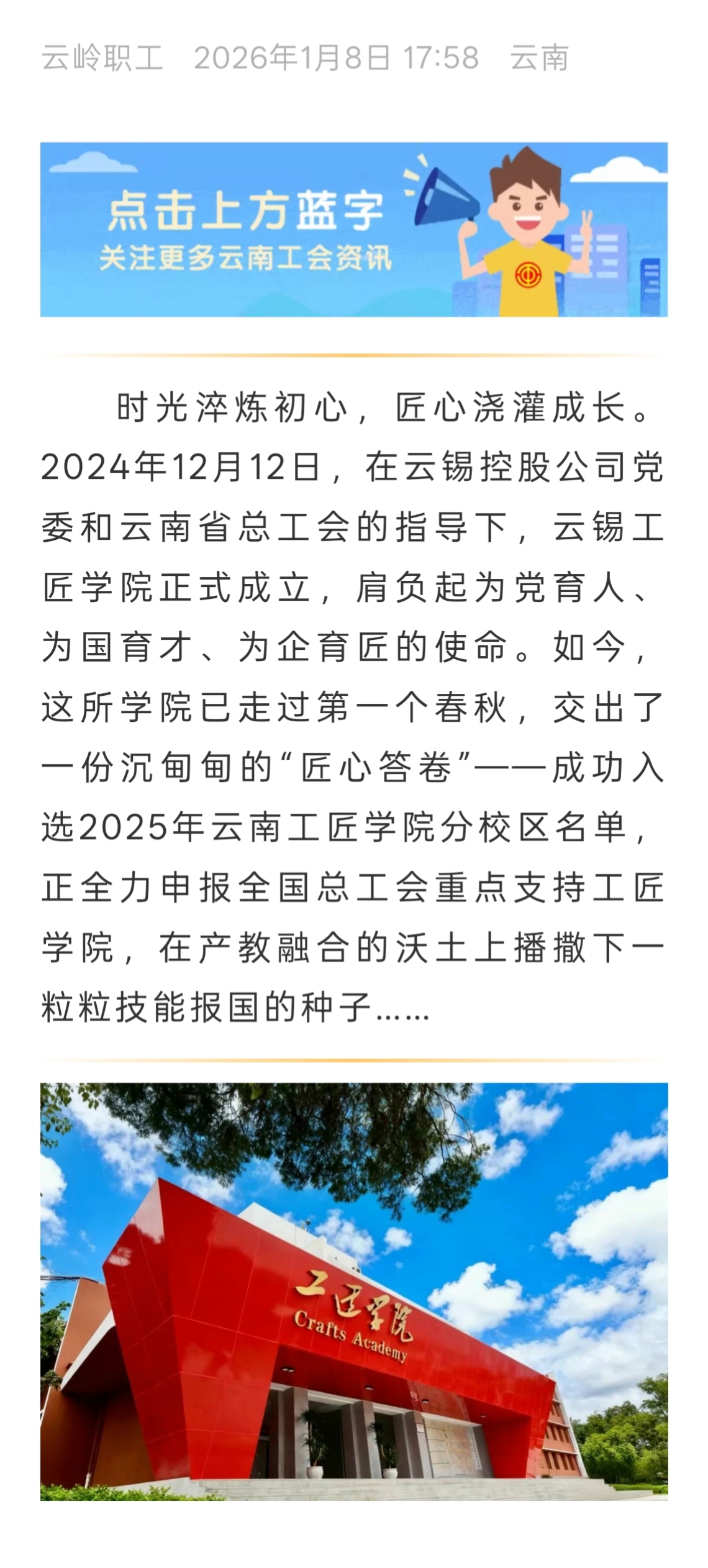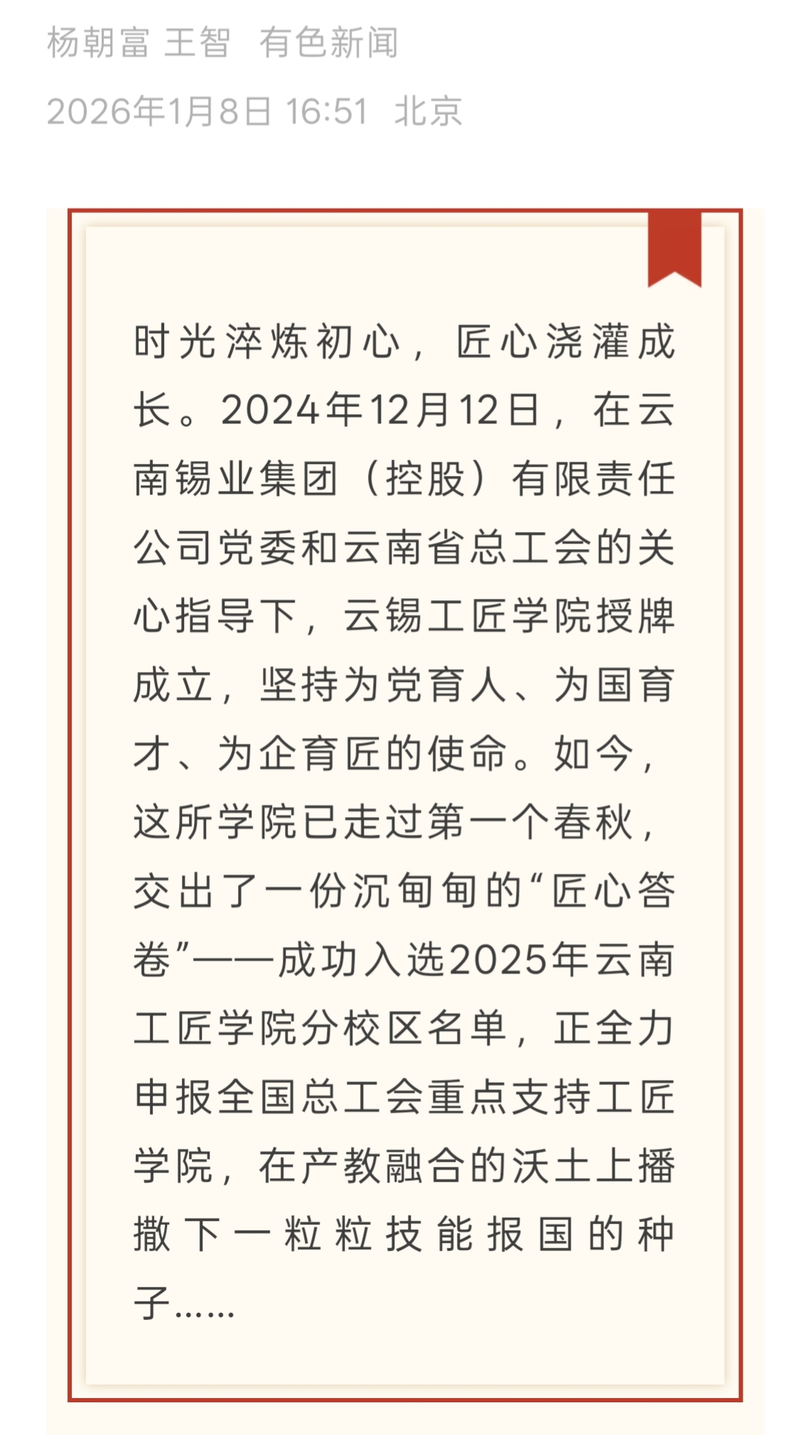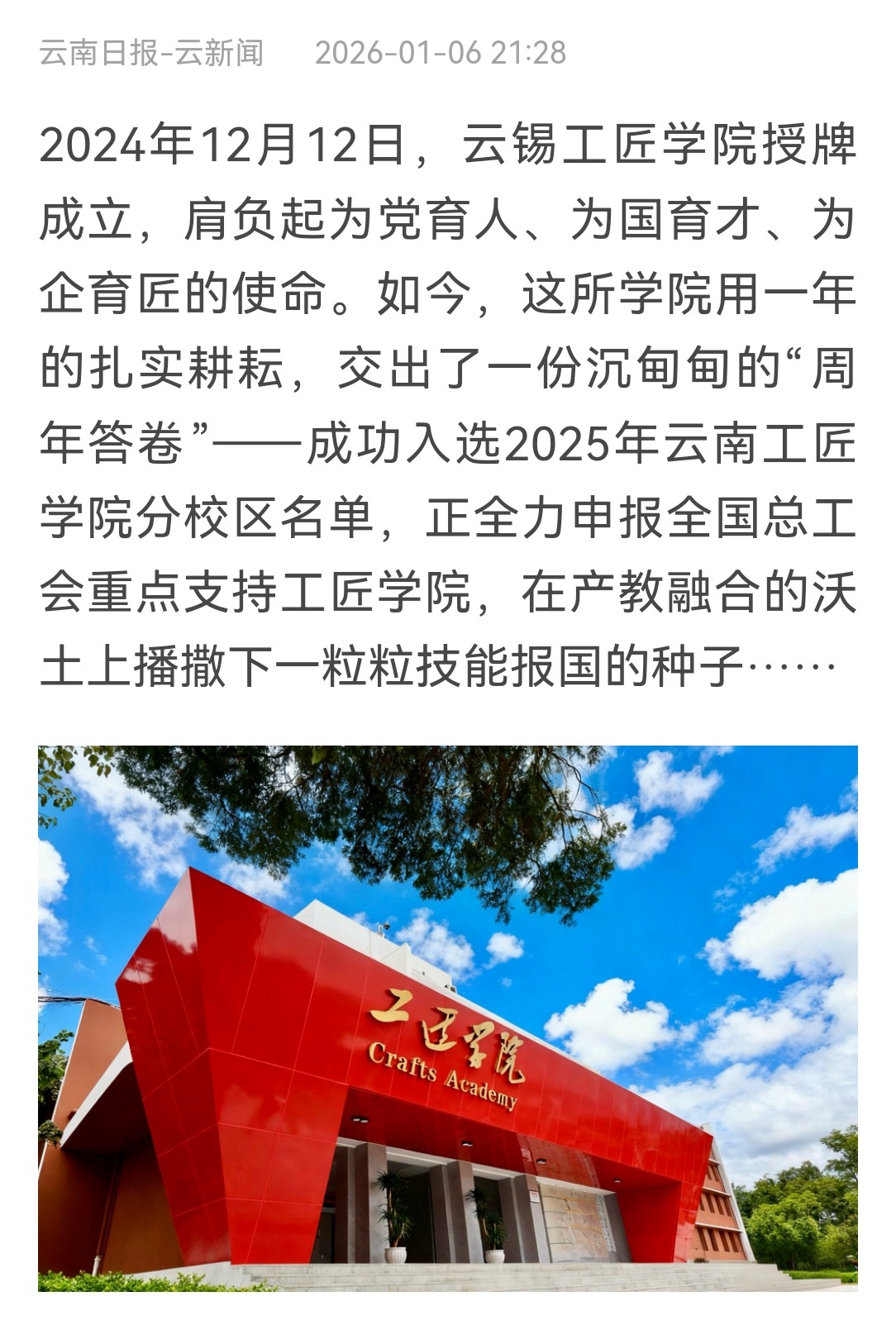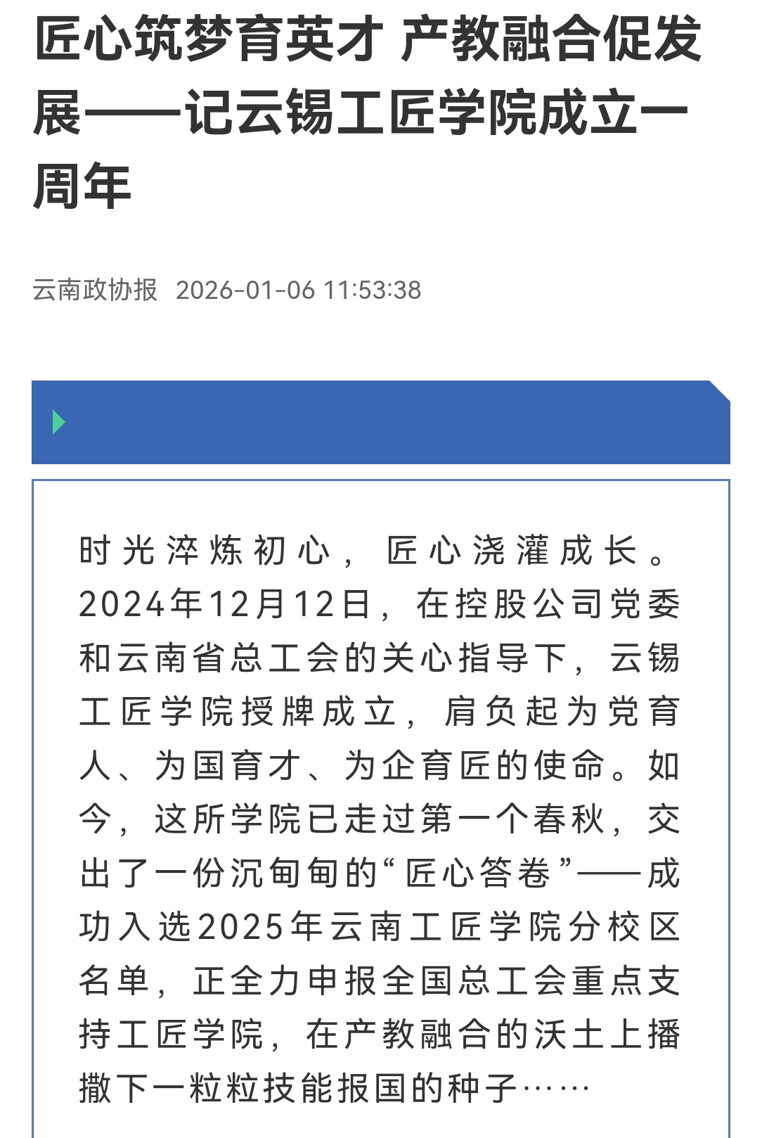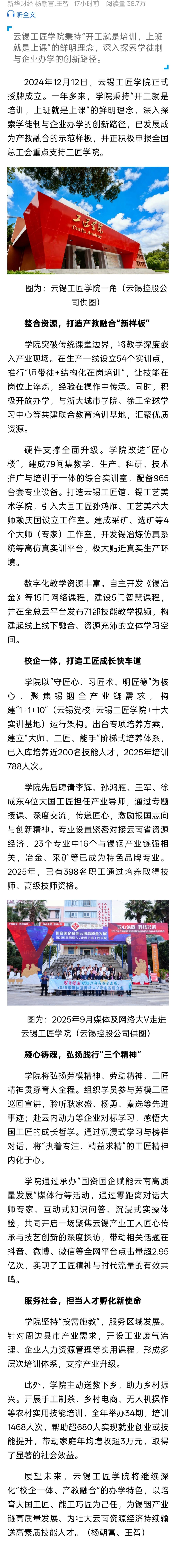 新华财经:云锡工匠学院以产教深度融合 锻造新时代工匠摇篮