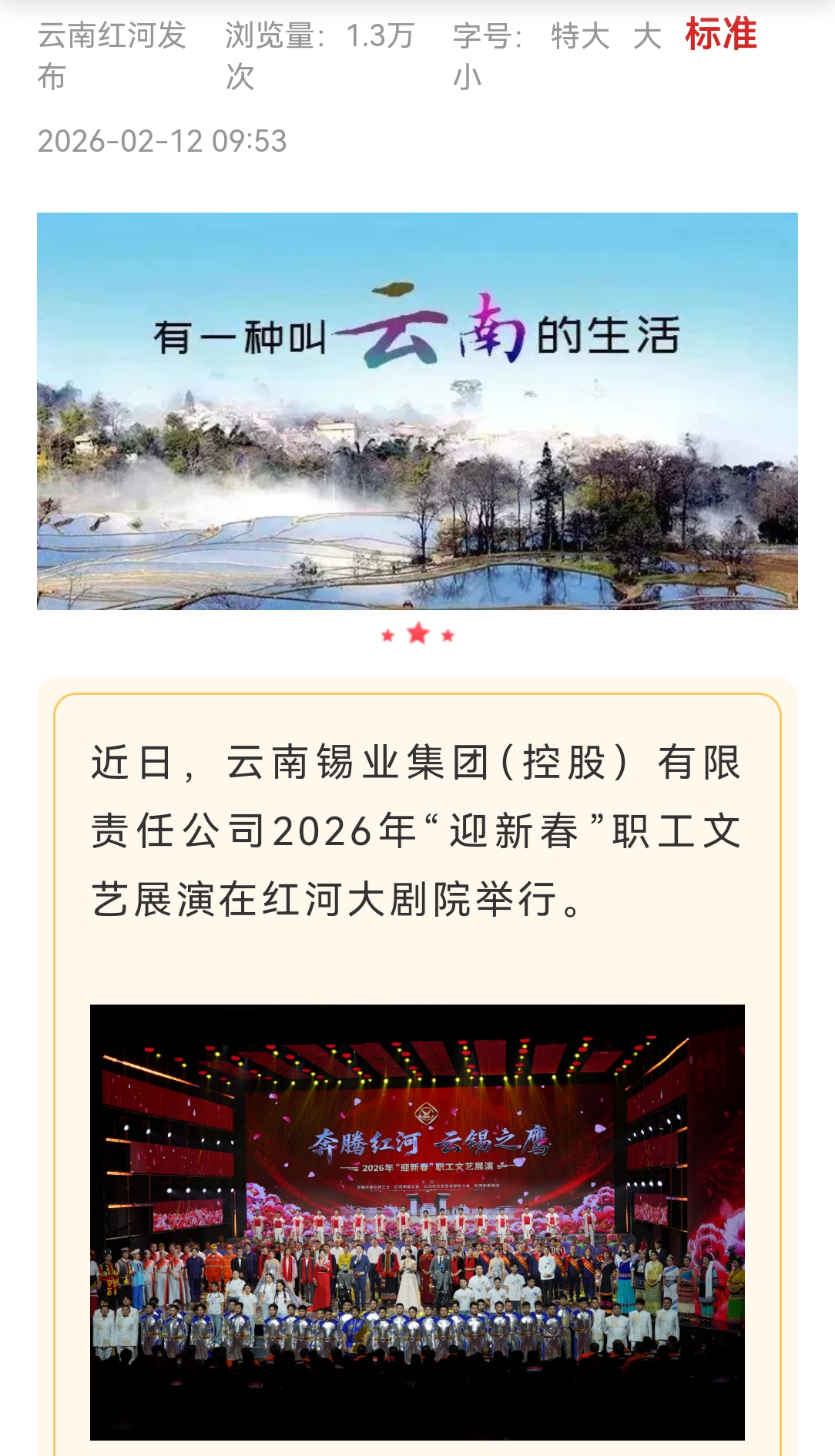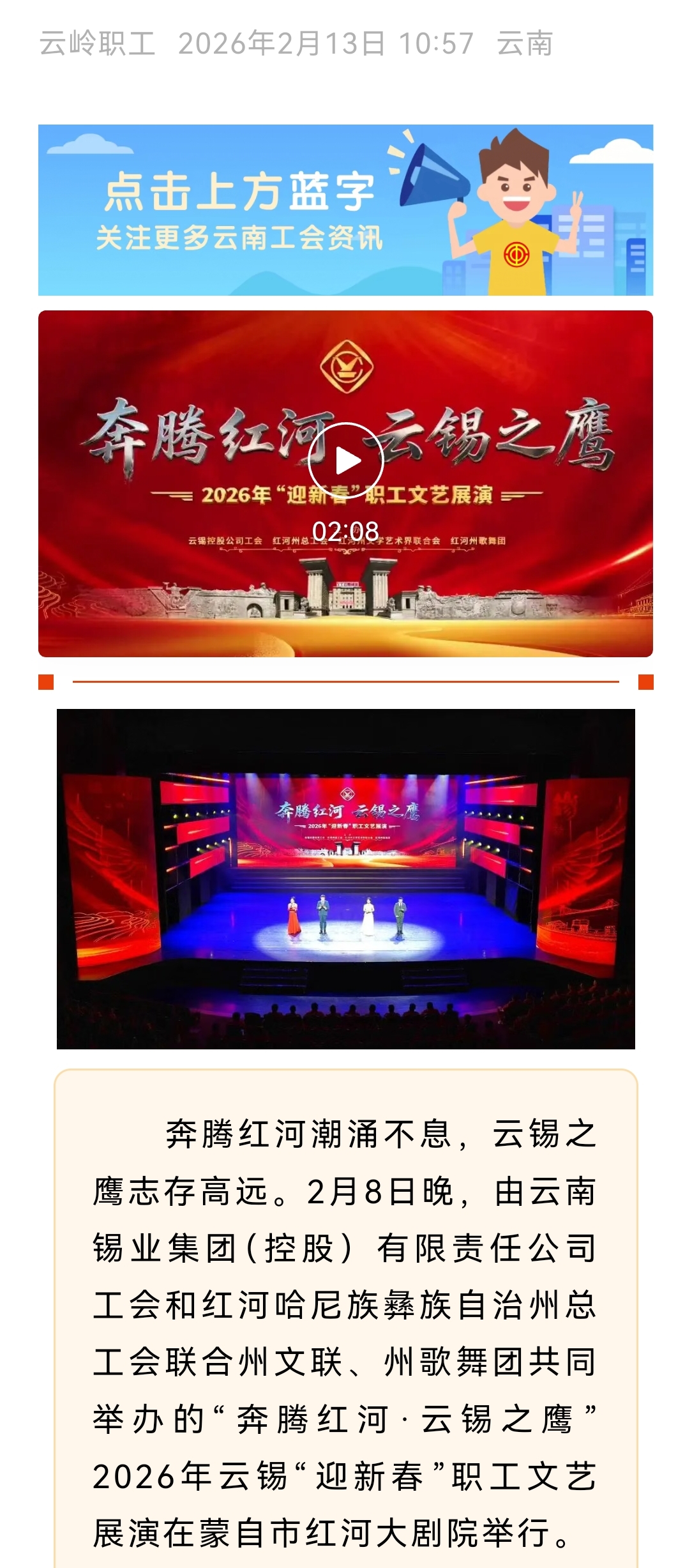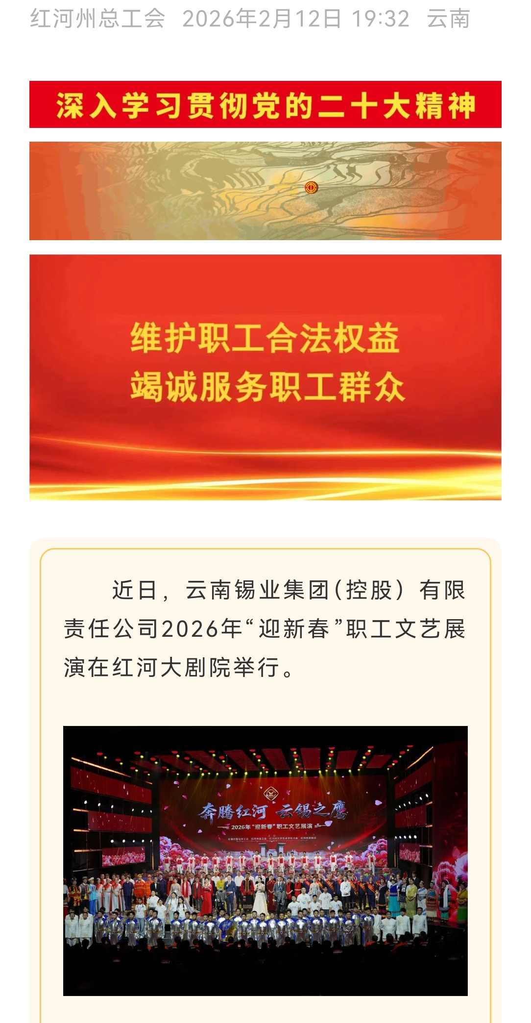 来源:红河日报、云岭职工、红河发布、红河州总工会、云南省红河大剧院发布、中国有色金属杂志