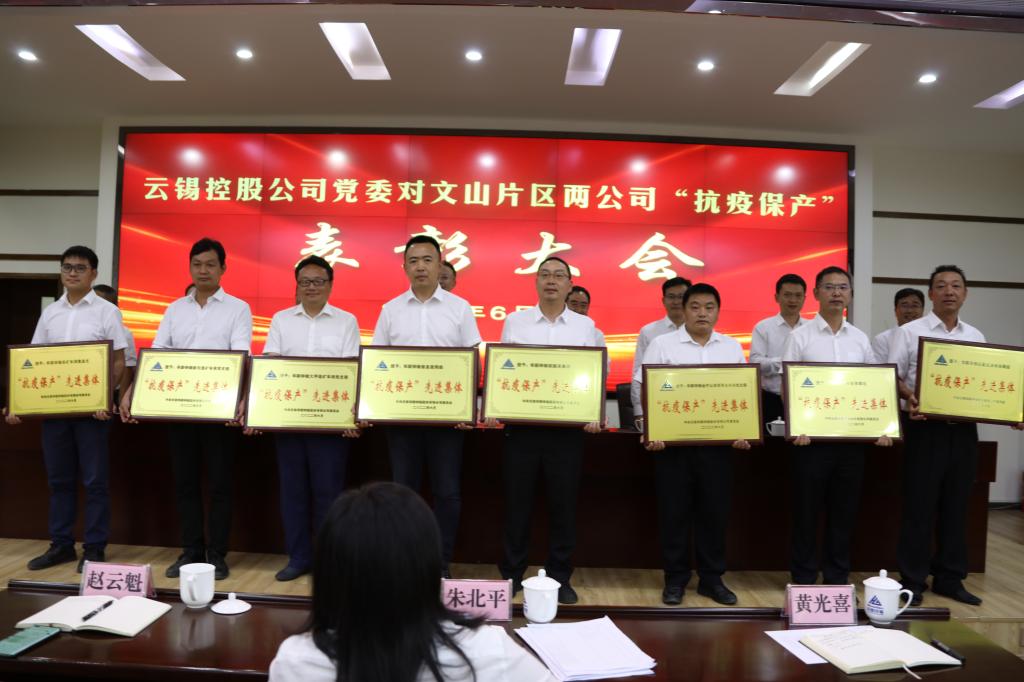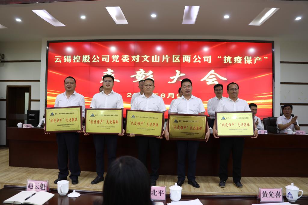 千难万险何所惧,大战大考炼真金。6月9日下午,云锡控股公司党委对云锡文山片区两公司“抗疫保产”表彰大会在华联锌铟五楼会议室隆重召开,总结回顾今年4月文山两公司不平凡的疫情防控阻击战、保供保链攻坚战历程,进一步动员激励两公司干部职工弘扬伟大抗疫精神,积极投身云锡打造全球锡铟行业全产业链“独角兽”、打造文山片区百亿锌铟产业的新征程。