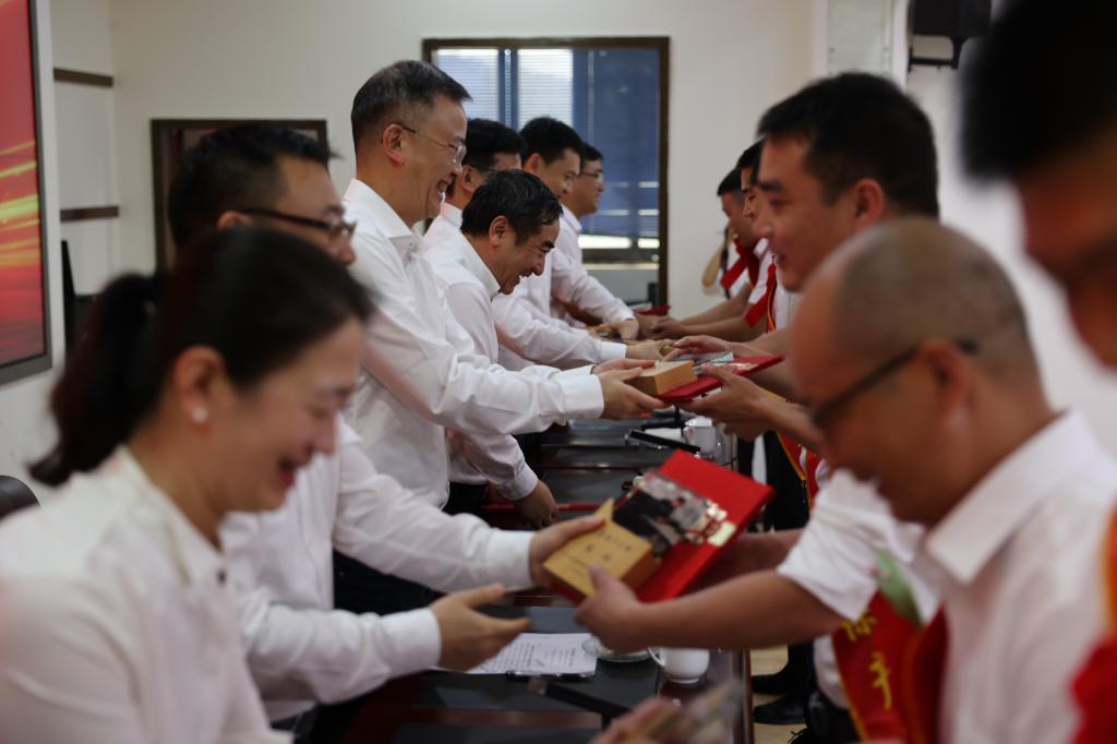 杨小江宣读华联锌铟党委表彰决定,授予13个集体“抗疫保产先进集体”荣誉称号,授予89名个人“抗疫保产先锋”荣誉称号。