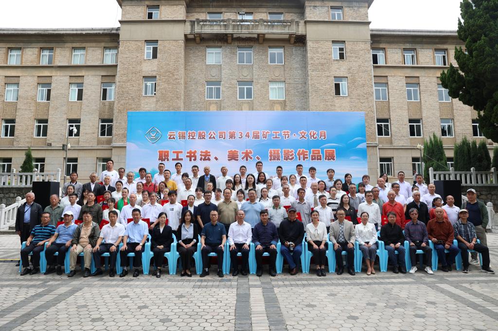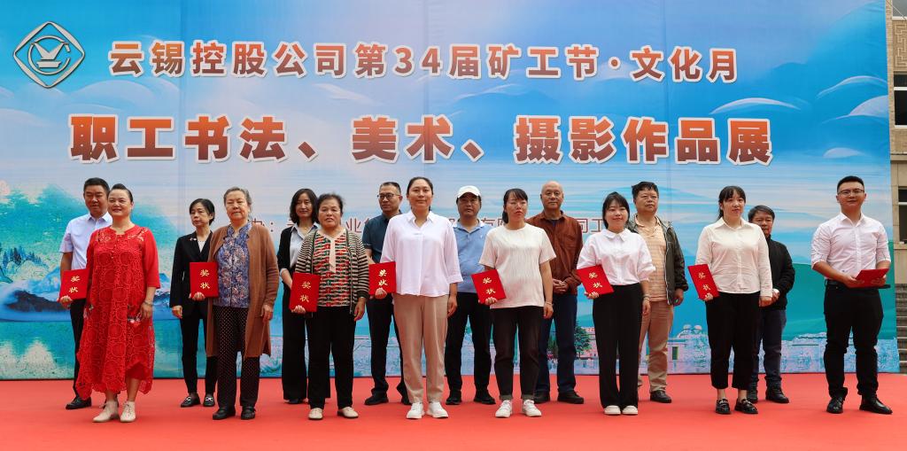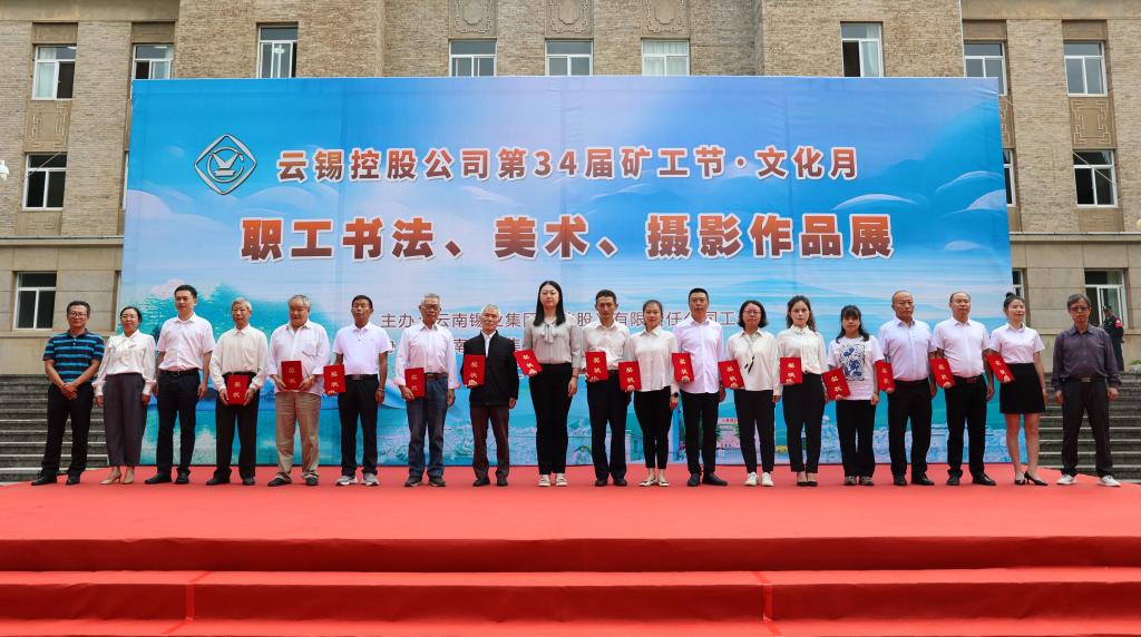 云锡热爱艺术,艺术展现云锡。9月25日,控股公司在个旧总部办公楼举行第34届矿工节·文化月职工书法、美术、摄影作品展暨颁奖仪式,激励广大干部职工以更加饱满的工作热情和昂扬向上的精神状态,为实现云锡创建锡铟行业世界一流示范企业,努力唱响“咱们工人有力量”的昂扬旋律。控股公司党委书记、董事长孙勇,党委副书记、工会主席刘俊,党委常委胥翠芬,党委常委、纪委书记兰菊以及控股公司老领导汤发出席活动。