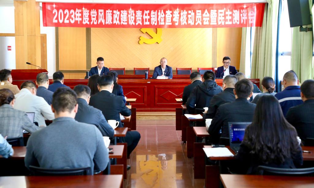 被考核单位党委主要负责人代表领导班子汇报2023年度落实党风廉政建设责任制工作情况,党委书记、董事长、总经理(经理)分别进行述责述廉,领导班子其他成员书面述责述廉。参会人员对领导班子及其成员落实管党治党责任、推进党风廉政建设和反腐败工作、领导干部述责述廉等情况进行民主测评。