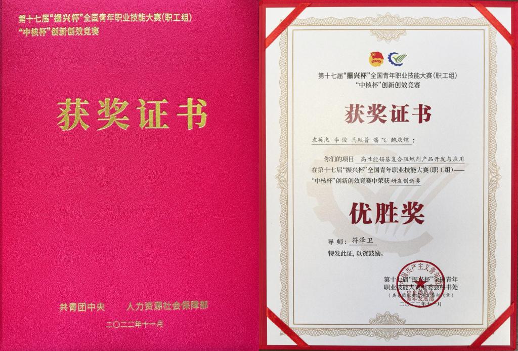在第十七届“振兴杯”全国青年职业技能大赛(职工组)——创新创效竞赛中,云锡阻燃剂团队凭借“高性能锡基复合阻燃剂产品开发与应用”项目课题荣获优胜奖。该赛事由共青团中央、人力资源和社会保障部联合主办,是国家一类技能大赛,首次面向青年职工增设创新创效竞赛,影响深远、含金量高。大赛旨在激发广大青年特别是企业青年创造潜能、创新活力和创优精神,提升青年职业技能水平与创新创效能力,倡导技能成才、技能报国之志,弘扬劳模精神、劳动精神和工匠精神。