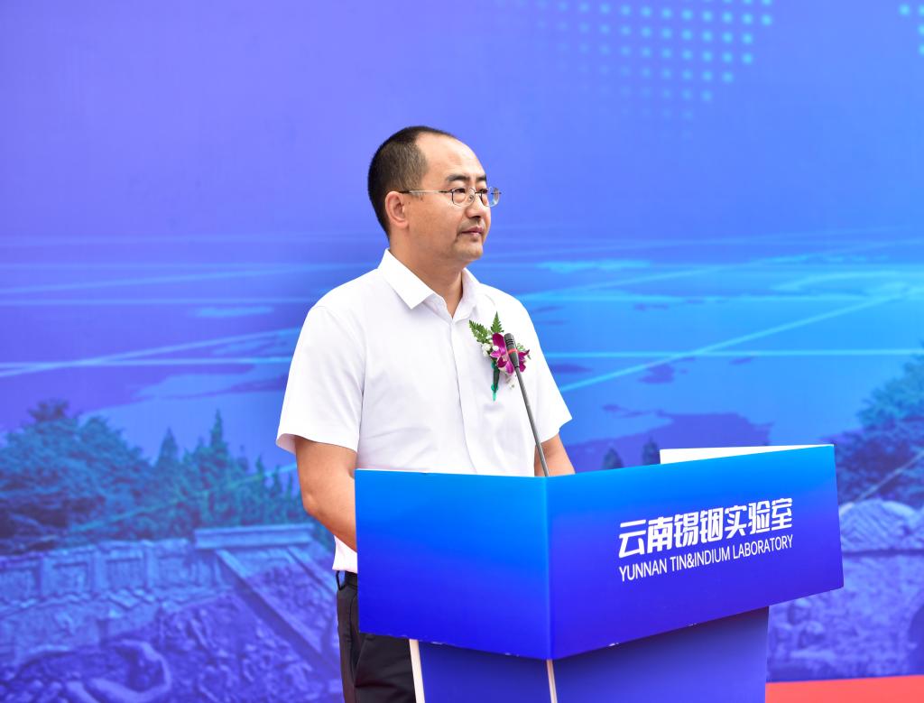 中国工程院院士桂卫华,云南大学党委副书记、常务副校长马文会教授,昆明理工大学副校长刘殿文教授;控股公司党委书记、董事长孙勇,党委副书记、副董事长、总经理韩守礼,党委委员、副总经理宋兴诚共同为锡铟实验室揭牌。