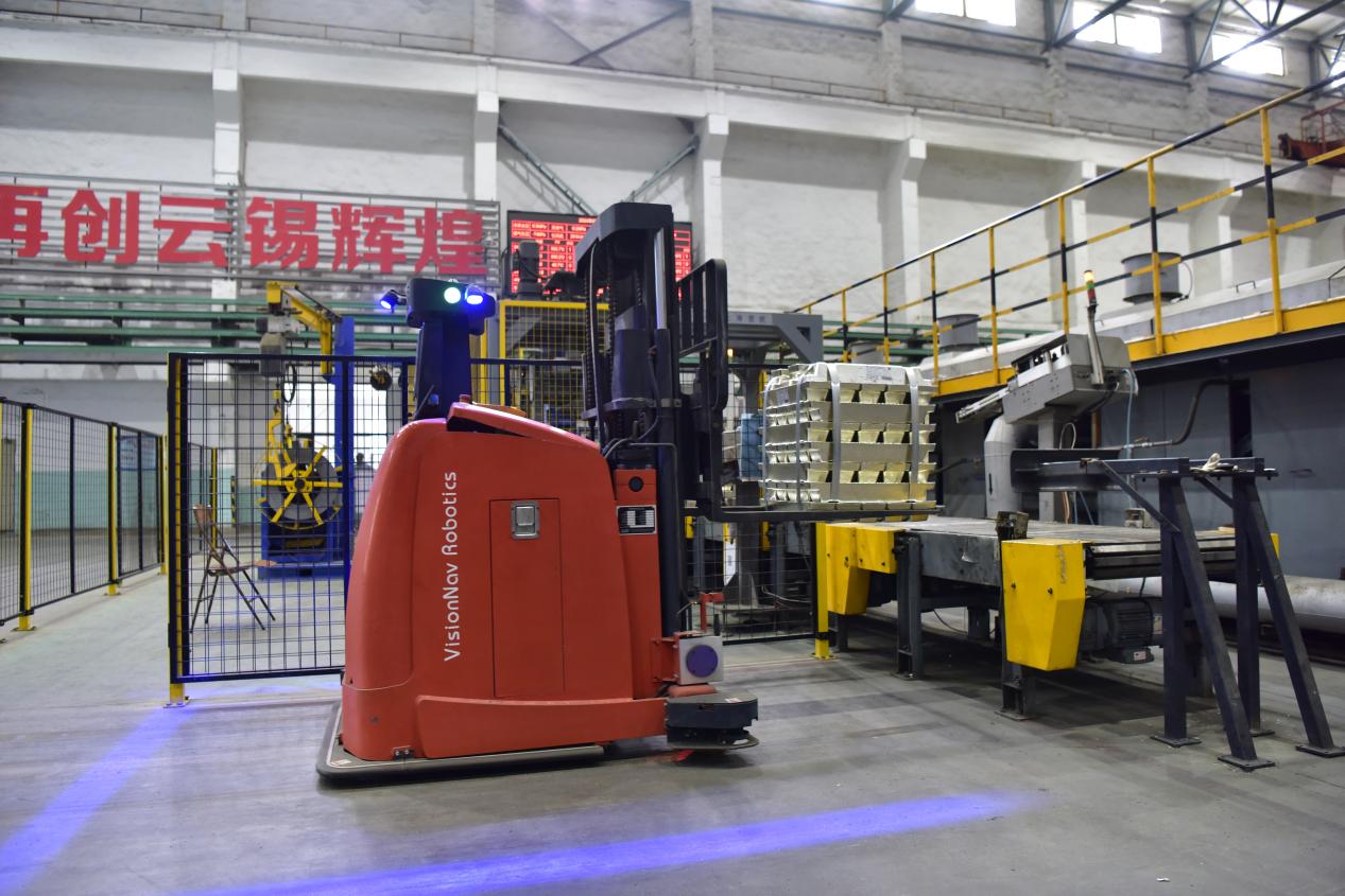 (锡业分公司5G智能仓储配套设备——AGV运送锡锭)
