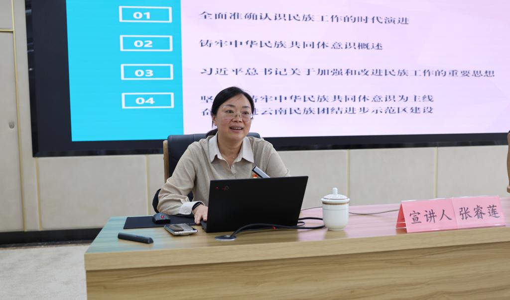 会议邀请云南省社会科学院研究员、铸牢中华民族共同体意识宣讲团成员张睿莲,围绕“铸牢中华民族共同体意识 推进新时代党的民族工作高质量发展”主题,进行了深入浅出、精辟透彻的宣讲。