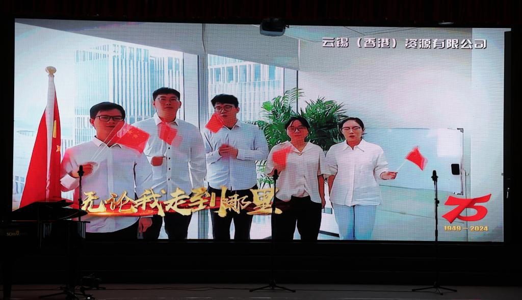 闭幕式上,播放了云锡各驻外单位干部职工同唱《我和我的祖国》短视频,用深情的歌声祝福祖国。