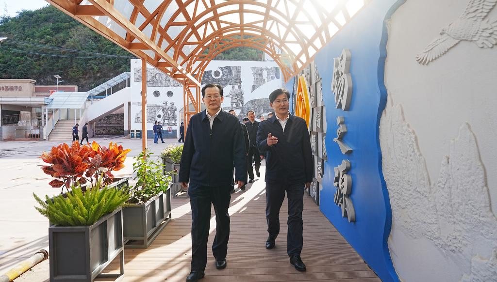 在大屯锡矿,许大纯参观1360平台、“锡之源”文化长廊、科技展厅和综合调度指挥中心,直观感受云锡建设绿色智慧矿山的做法及成效。