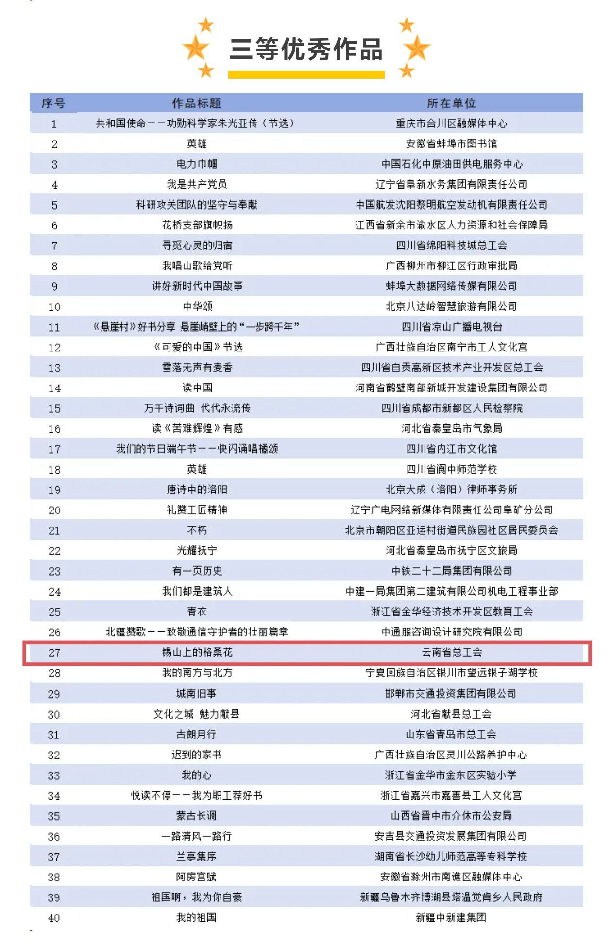 12月27日,省总工会和省委网信办联合举办2024年“网聚职工正能量 争做云南好网民”主题活动总结展示暨2025年启动仪式。控股公司工会获多项荣誉。