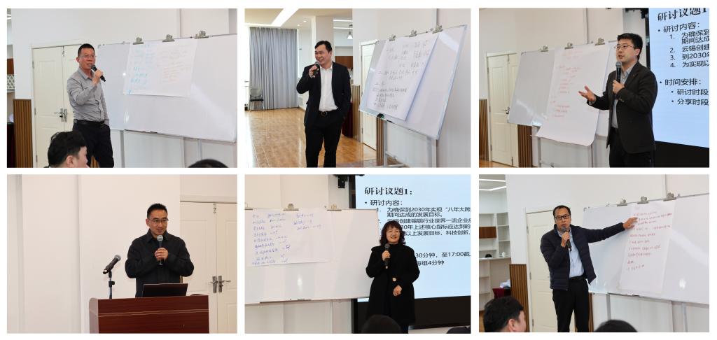 控股公司总经理助理、副总会计师、安全副总监,两级总部各部门(中心)负责人,各直管单位、所属单位党政主要负责人,以及各主要驻外单位负责人分为6个小组,以秉承“开放交流、信息共享”的原则,围绕“十五五”暨“八年大跨越”阶段发展目标、“十五五”期间重点业务方向、需要强化的协同能力等进行交流研讨,集思广益、各抒己见,既有蓝图描绘、更有举措细化,既有目标谋划、更有数据分析,为后续开展好云锡“十五五”乃至中长期战略谋划及业务执行提供重要参考。