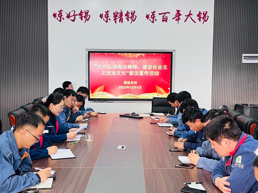 云锡文山两公司结合学习宣传贯彻党的二十大精神和习近平法治思想,邀请北京德恒(昆明)律师事务所律师面向企业经营管理人员和职工开展培训,深入宣传依法合规经营理念,推进企业法治建设。同时两公司还组织职工参加2023年全国“宪法宣传周”宪法知识网上竞答活动,利用LED电子屏、微信公众号等宣传载体播放宪法宣传标语,大力弘扬宪法精神,形成尊重宪法、崇尚宪法的浓厚氛围。(施宗芳 郑新华)