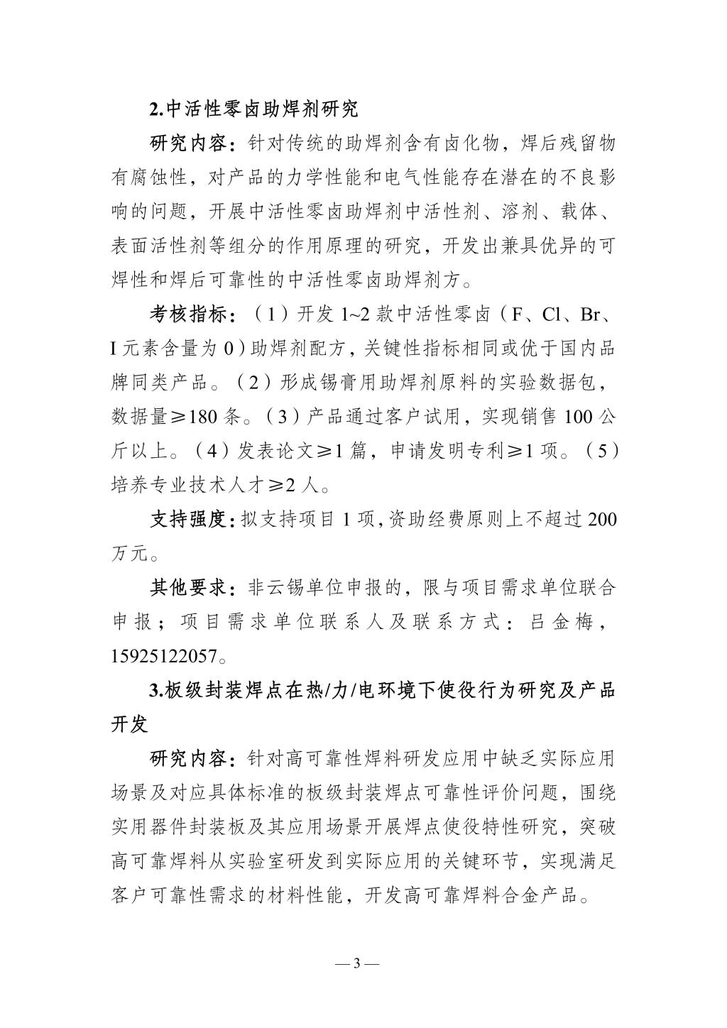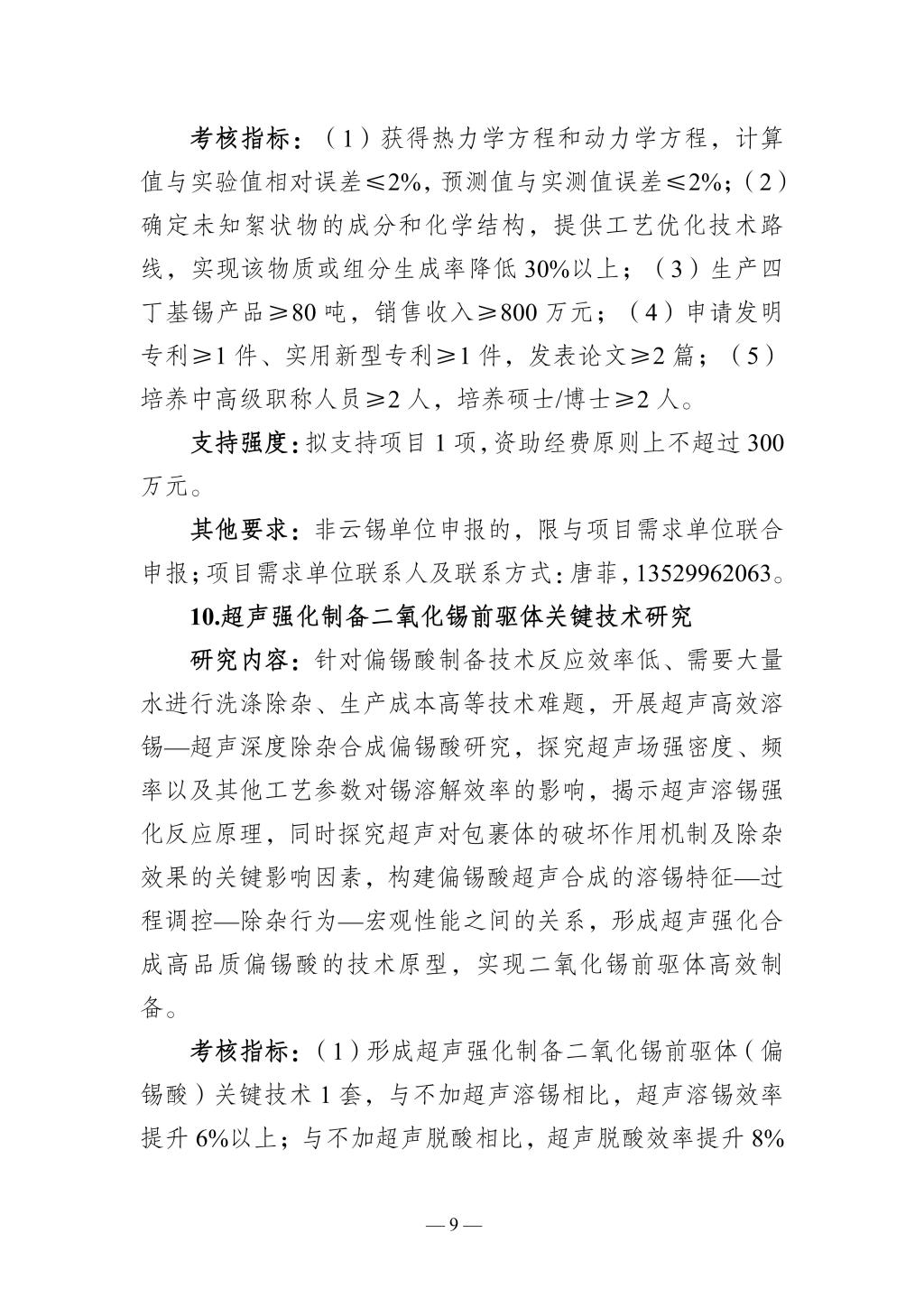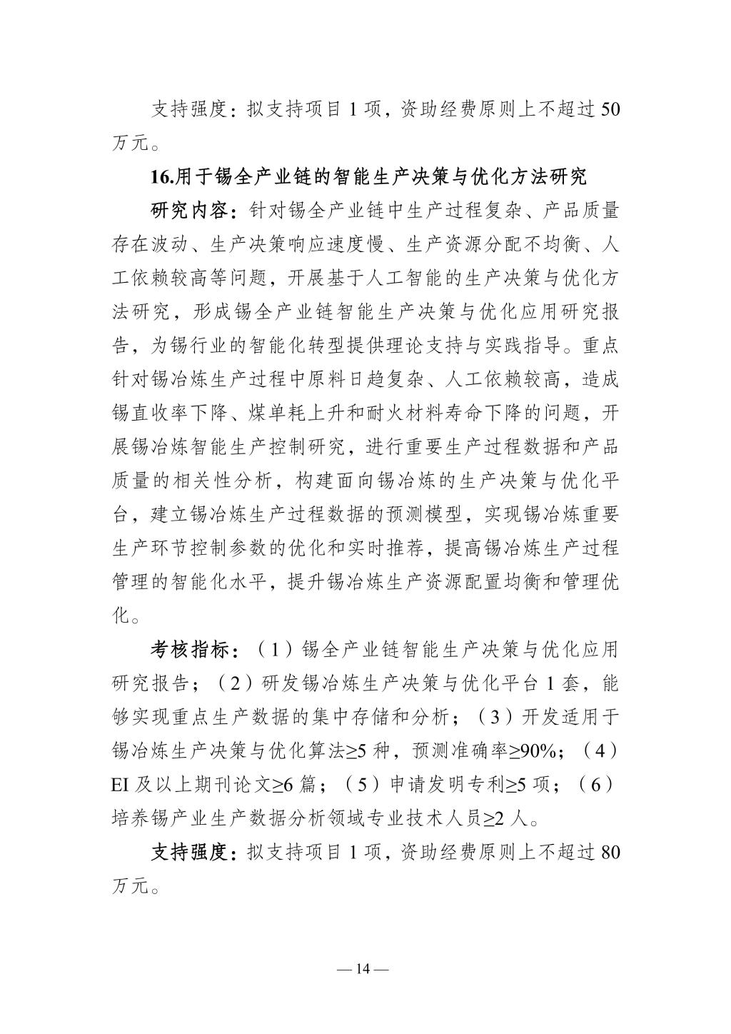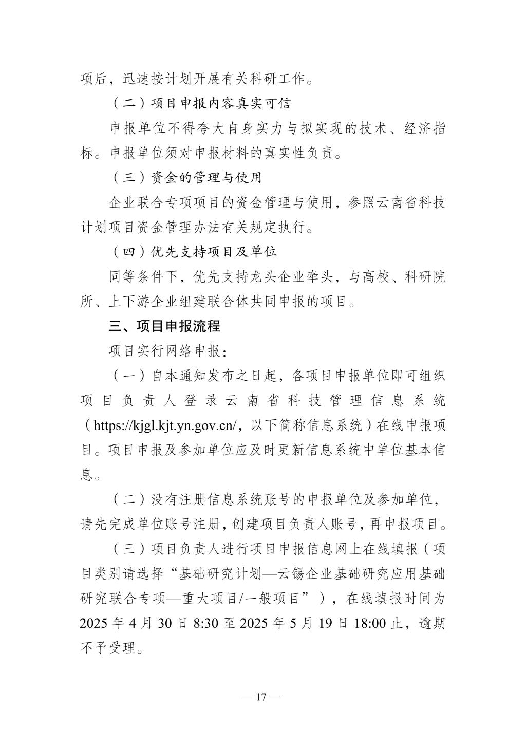 关于发布云南省科学技术厅 云南锡业集团(控股)有限责任公司应用基础研究企业联合专项(第二期)第一年度项目申报指南的通知