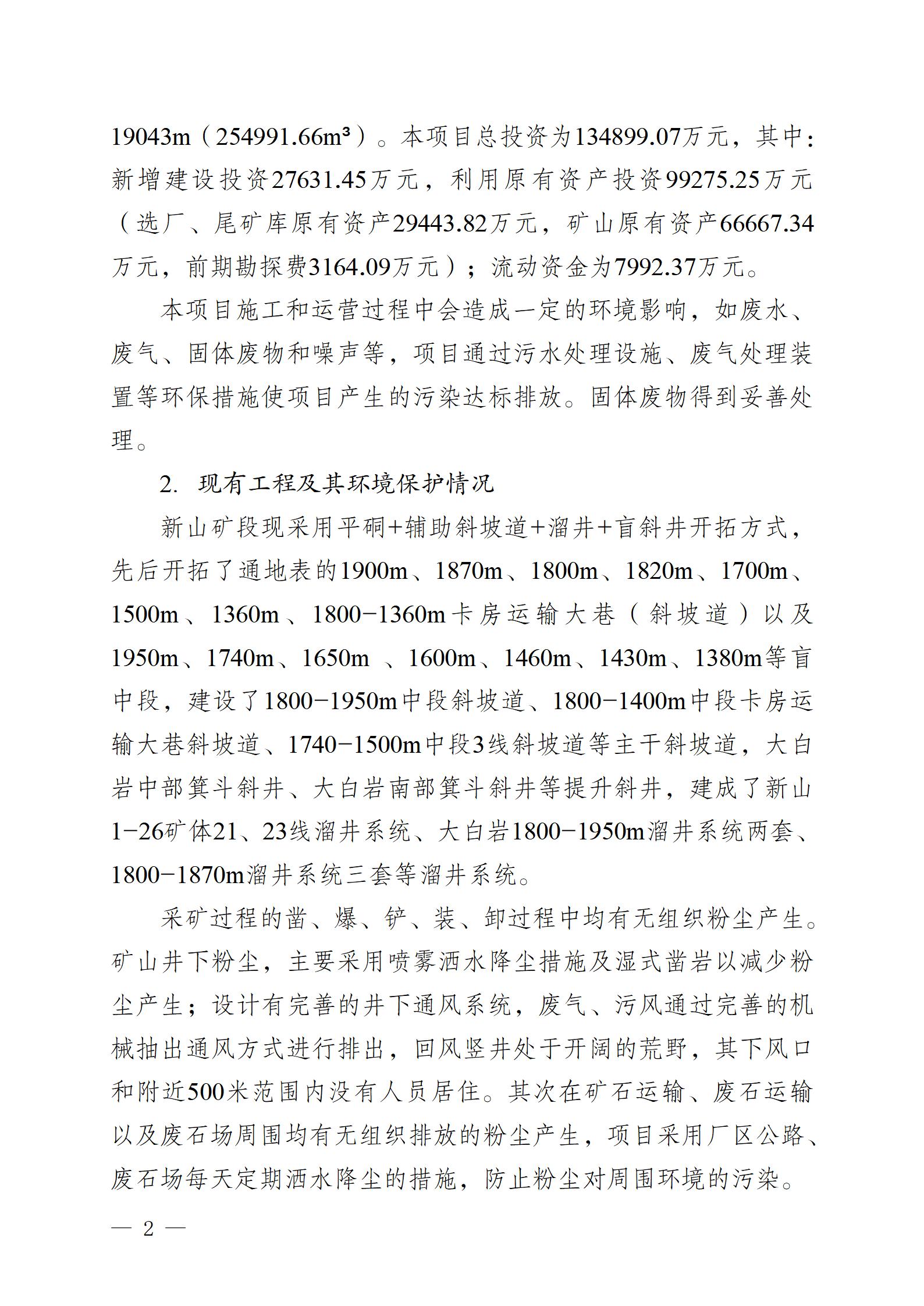 云南锡业股份有限公司卡房分矿铜钨矿150万t/a采矿工程技改项目环境影响评价公众参与第一次公告