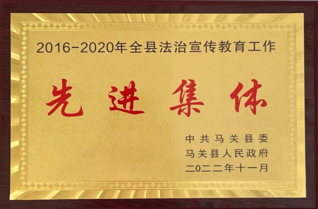 文山锌铟荣获马关县“2016-2020年全县法治宣传教育工作先进集体”