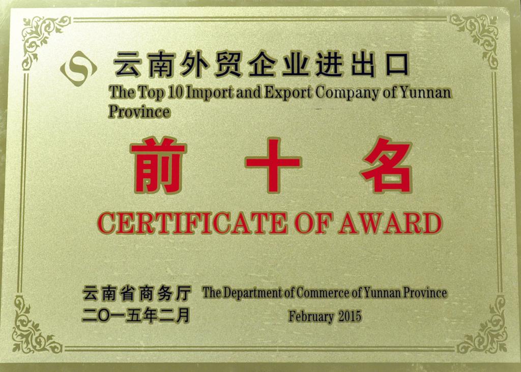 今日关注:控股公司荣获云南外贸企业进出口前十名