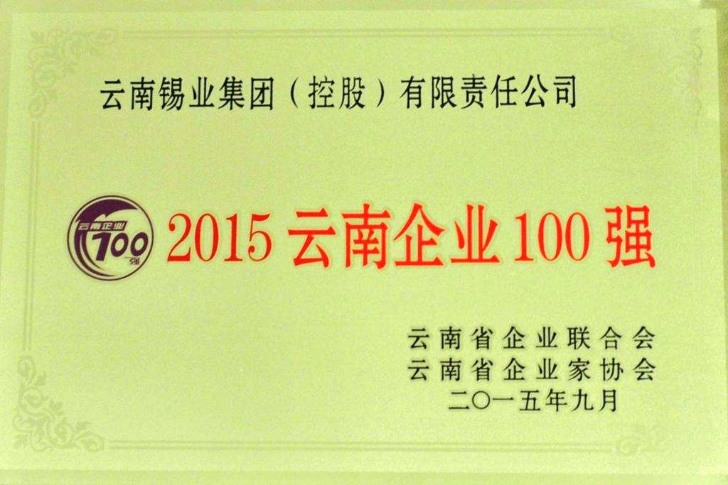 今日关注:控股公司位列“2015云南企业100强”第10强