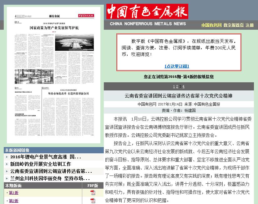 中国有色金属报 :云南省委宣讲团到云锡宣讲传达省第十次党代会精神
