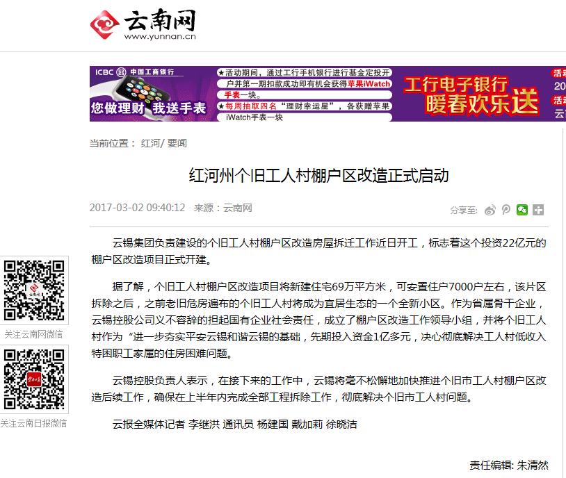 云南日报:个旧工人村棚户区改造正式启动