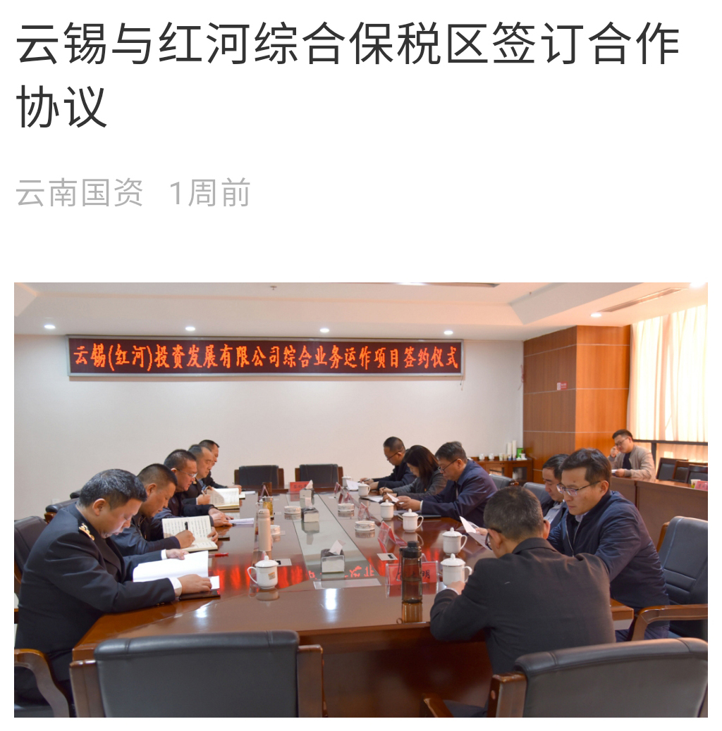 云南国资:云锡与红河综合保税区签订合作协议