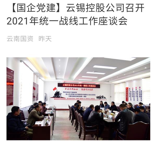 云南国资、搜狐网:【国企党建】云锡控股公司召开2021年统一战线工作座谈会