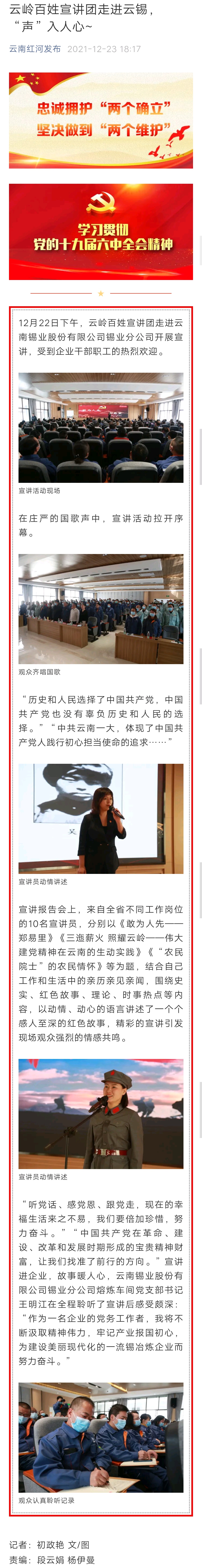 【云南红河发布】云岭百姓宣讲团走进云锡,“声”入人心