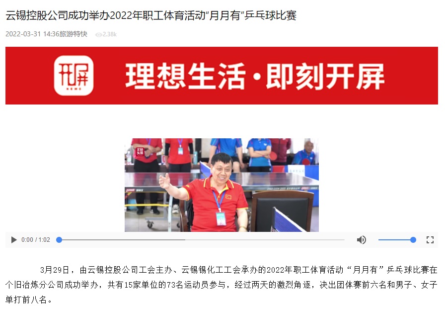 云报客户端、文旅头条:云锡控股公司成功举办2022年职工体育活动“月月有”乒乓球比赛