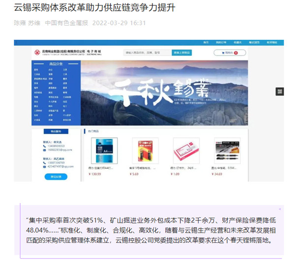 云南国资、中国有色金属报:云锡改进采购体系 助力供应链竞争力提升
