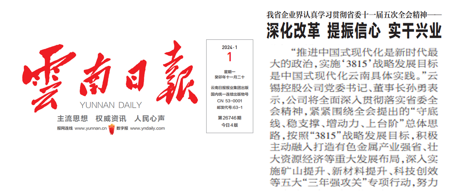 云南新闻联播:科技赋能 创新驱动 云锡集团加快创建锡铟行业世界一流示范企业